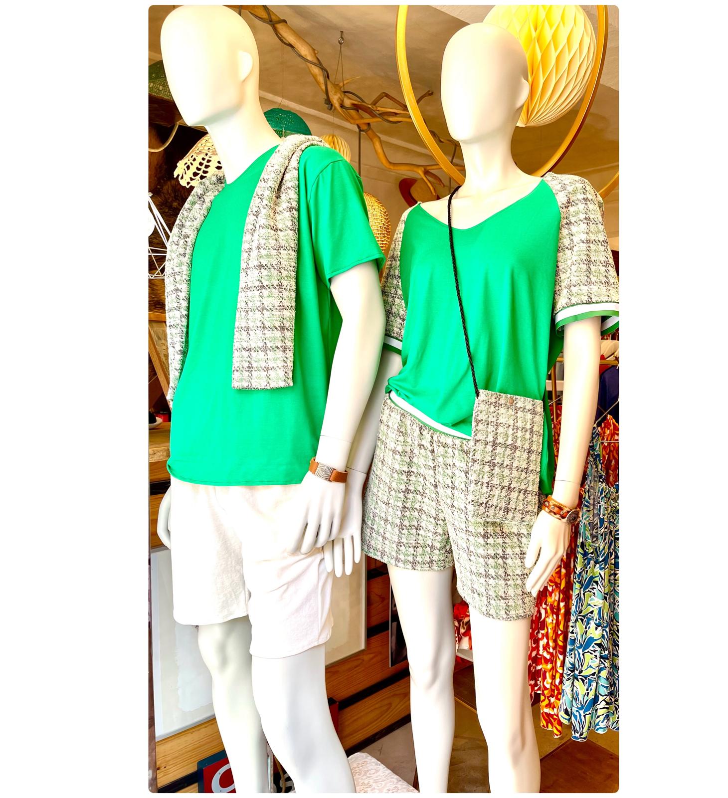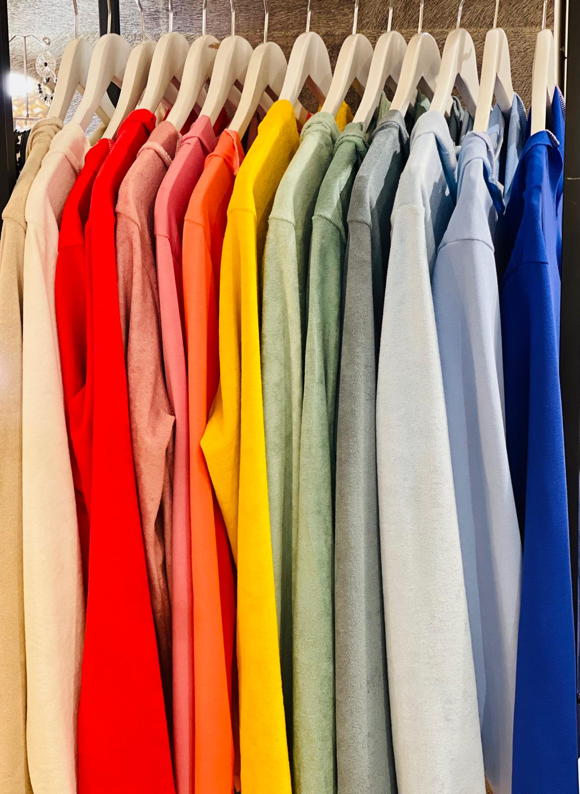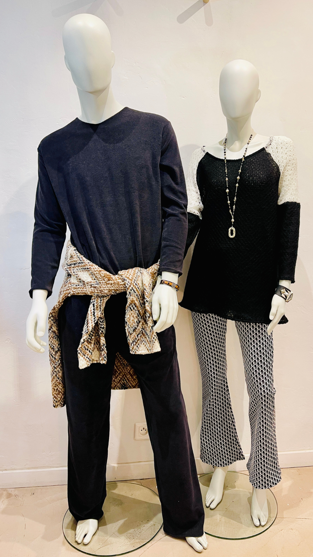Les tissus présentés varient au fil du temps, offrant toujours de nouvelles inspirations. Seules les coupes des vêtements restent intemporelles et disponibles en permanence.