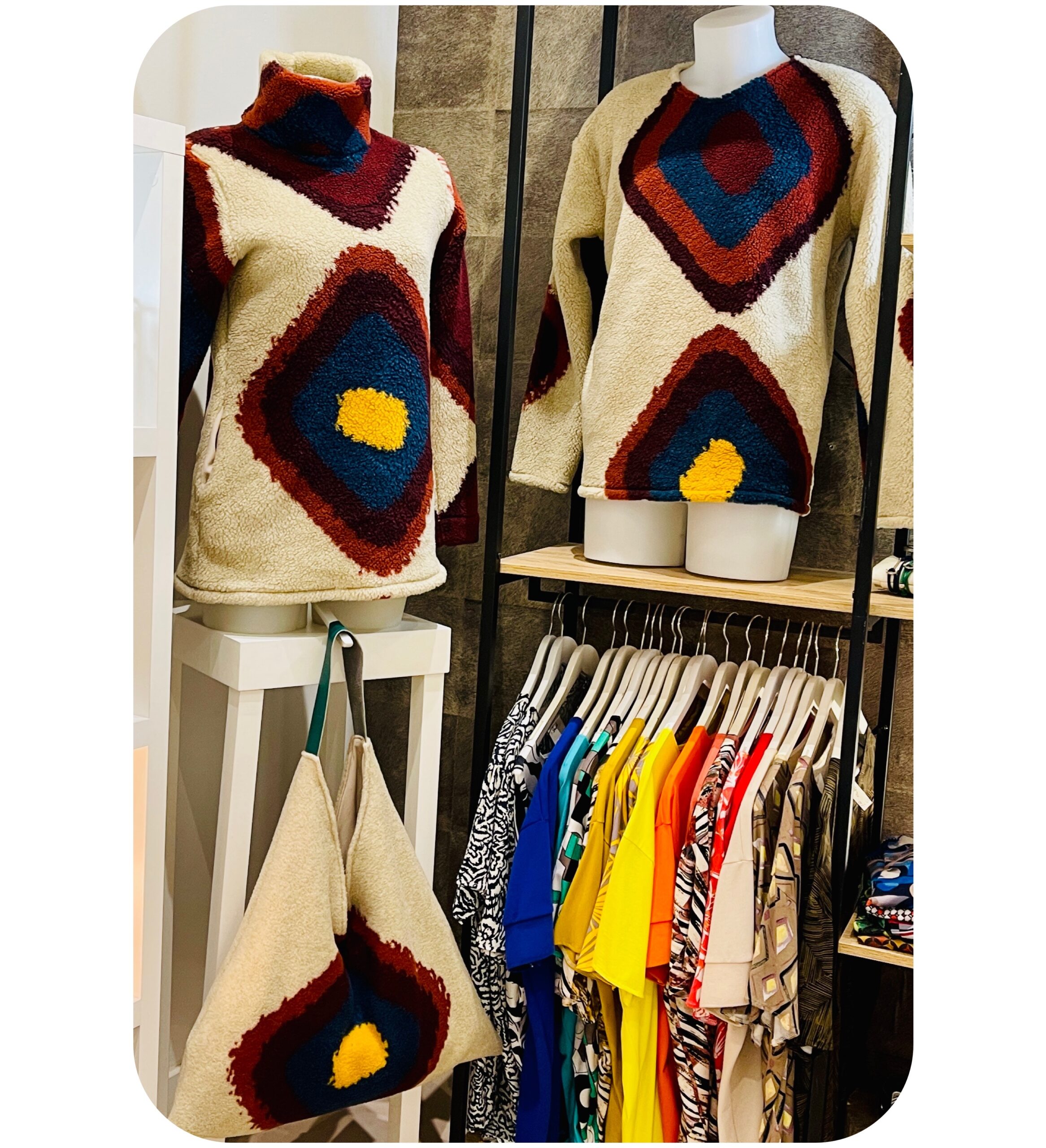 Ici, je conçois mes collections de vêtements sur place, à la main, avec amour et minutie. Ce lieu est aussi un espace de partage, où je mets en avant le savoir-faire d’autres créateurs français. Vous y trouverez des bijoux, des accessoires et bien d’autres merveilles, tous faits main.